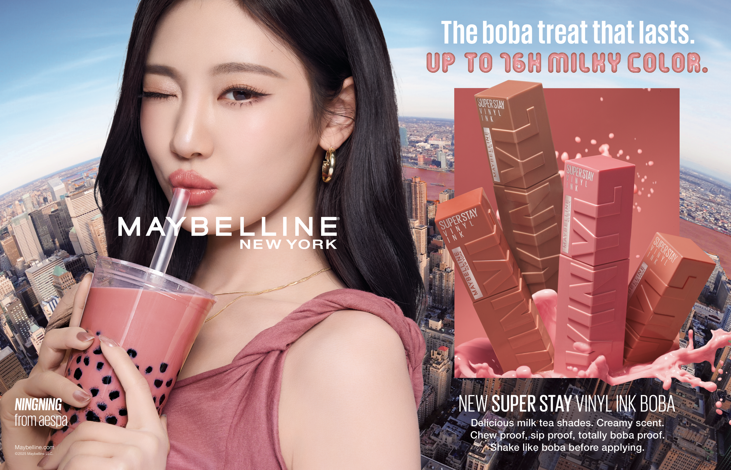 Films and POS for Boba for Super Stay Vinyl Ink from Maybelline New York featuring Ningning from the K-pop group, Aespa.